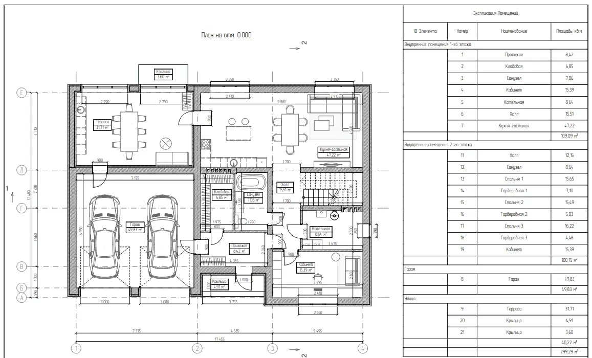 Габариты: 17.5 на 12.4 м, общая площадь: 250, полезная площадь: 209 м2. Спален: 3 спальни