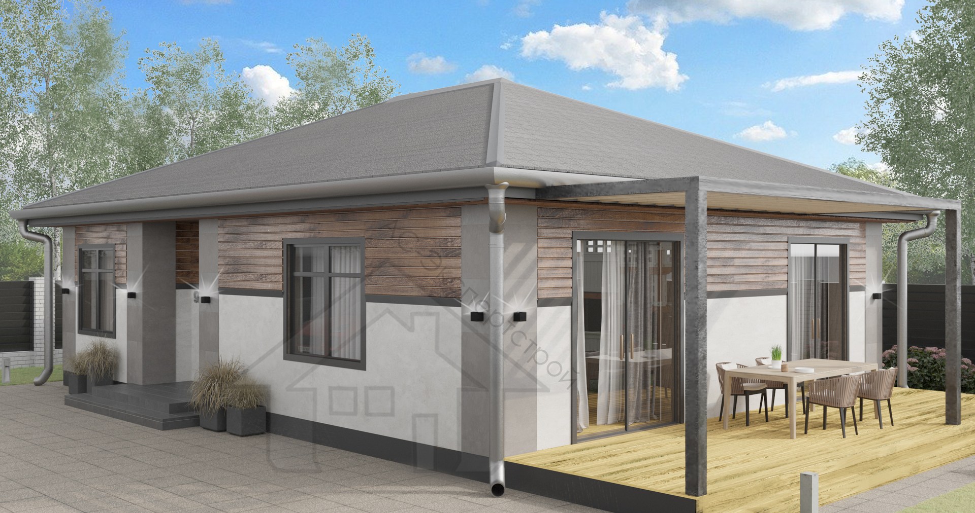 Одноэтажный дом 95 м2 в современном стиле с террасой
