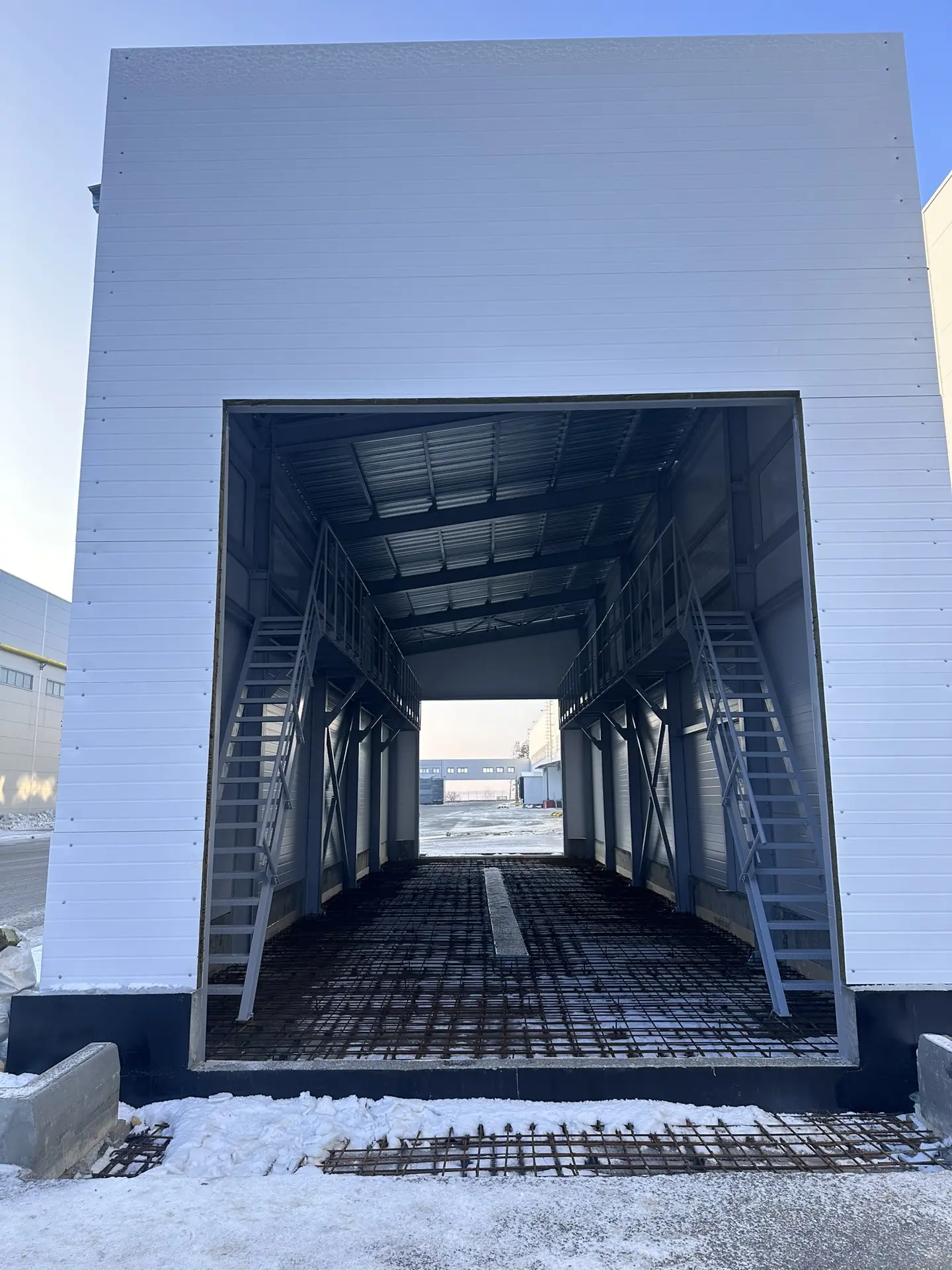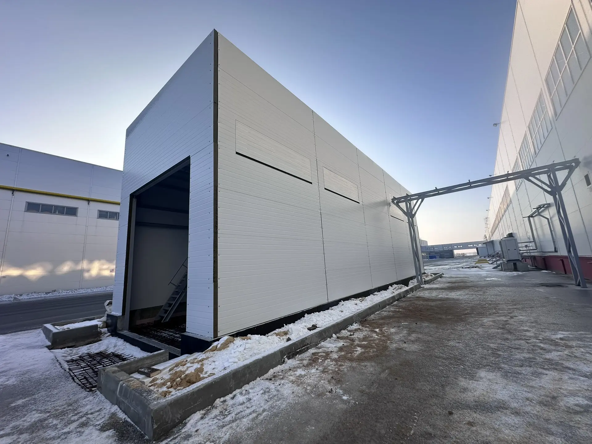 Объект из сэндвич-панелей размерами 6×17×9 м (длина × ширина × высота), реализованный под ключ — от идеи до завершения строительных работ.