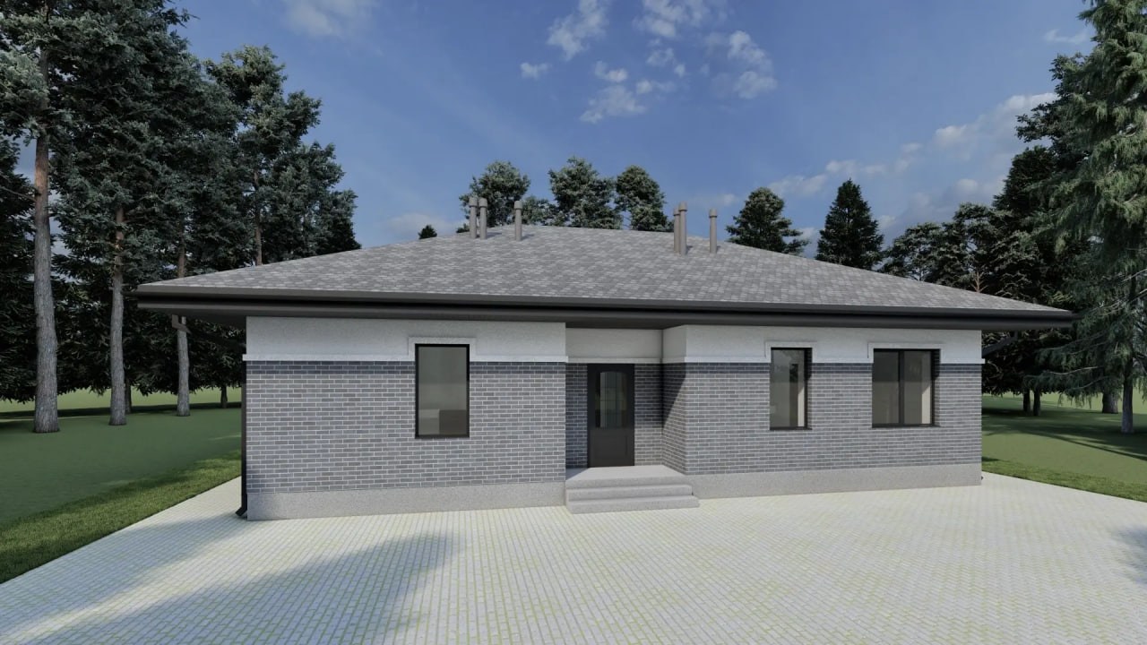 Проект одноэтажного дома площадью 95 м² сочетает современную архитектуру, функциональную планировку и рациональный бюджет строительства.
