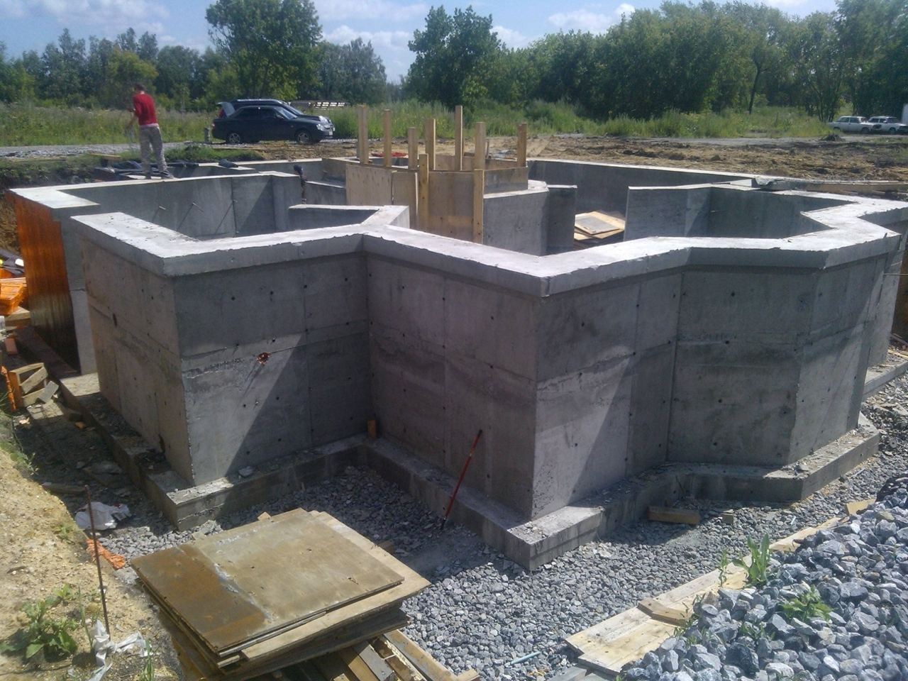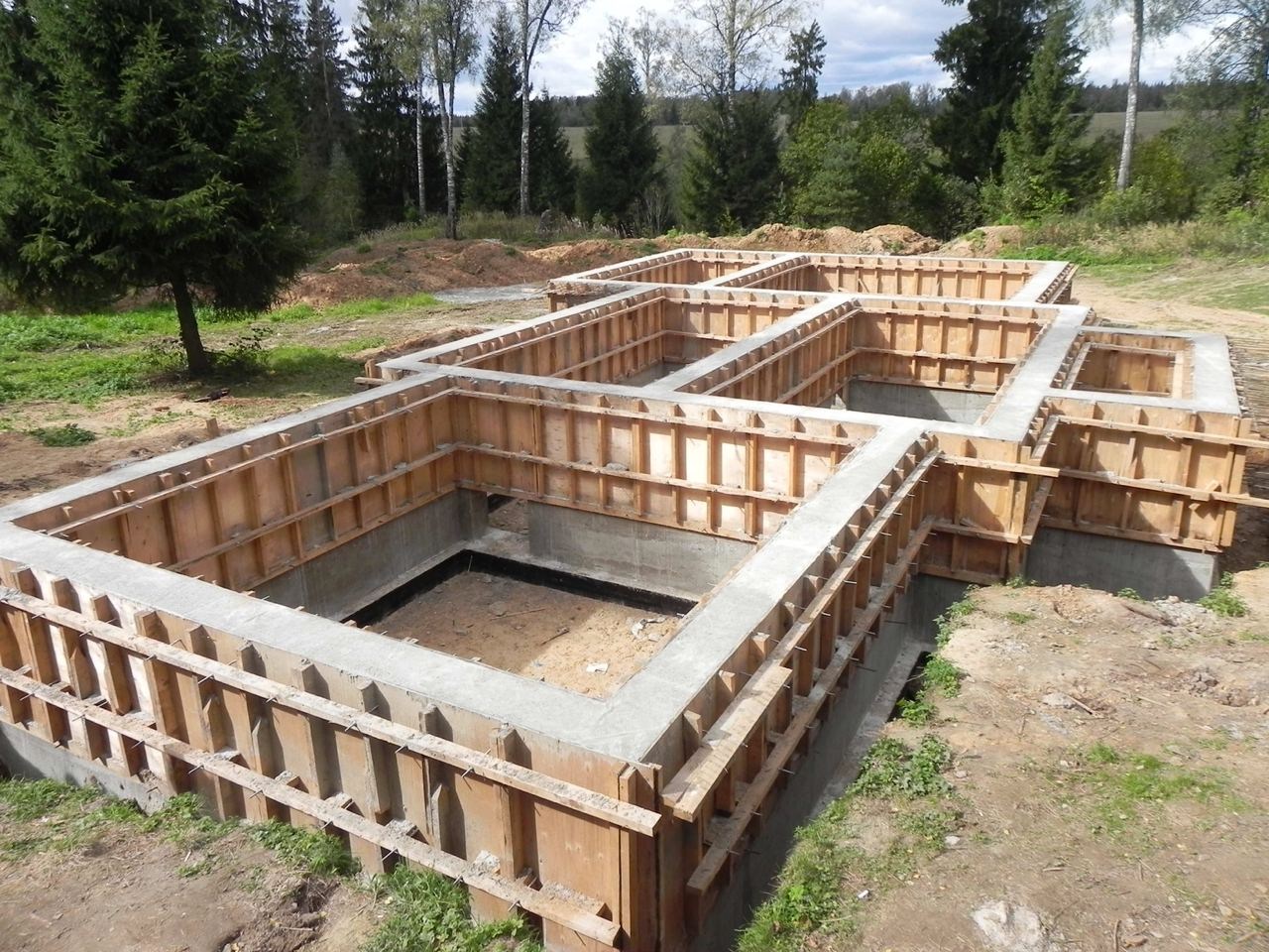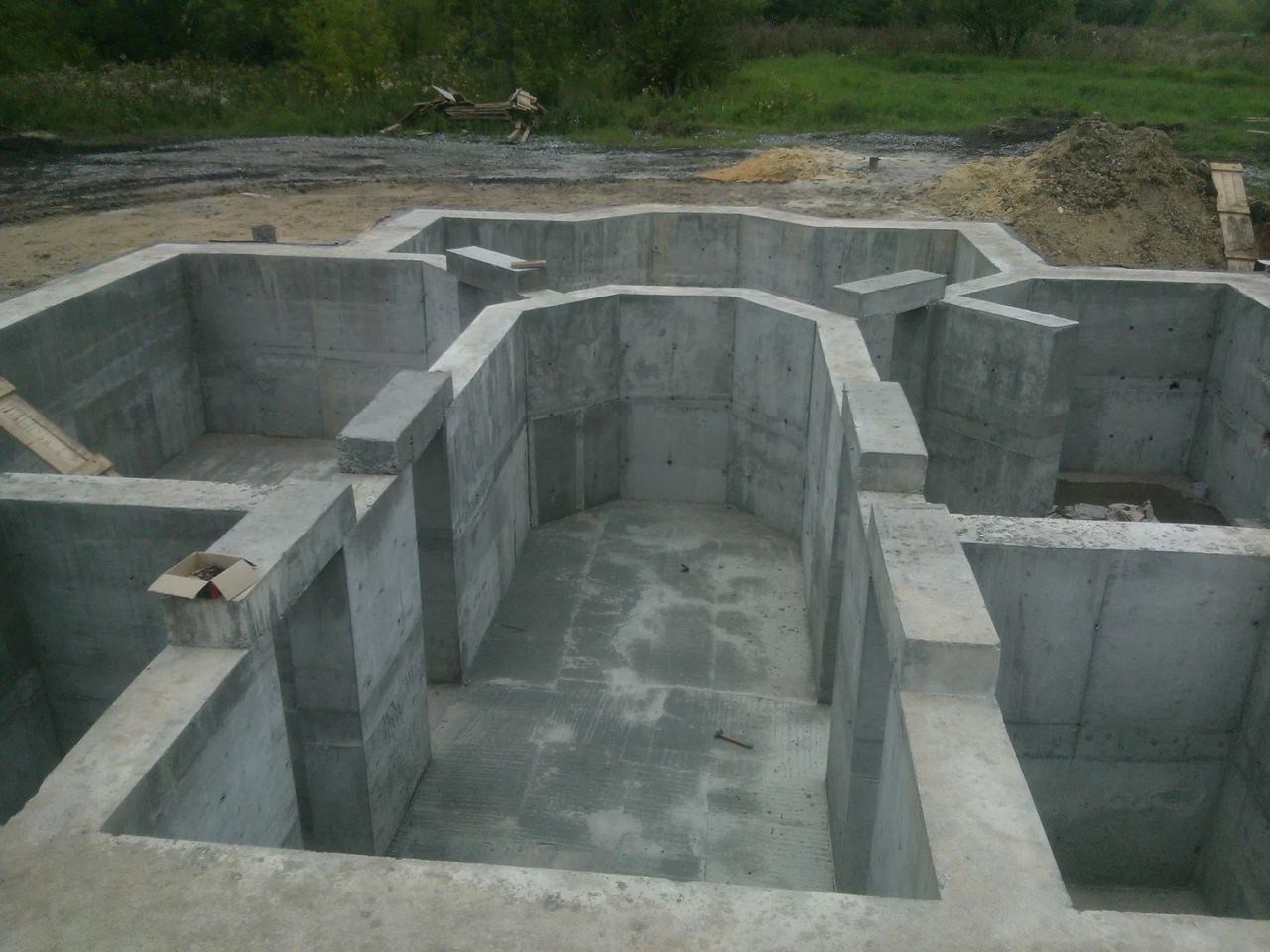 Строительство фундамента с цокольным этажом для размещения гаража, технических или хозяйственных помещений.